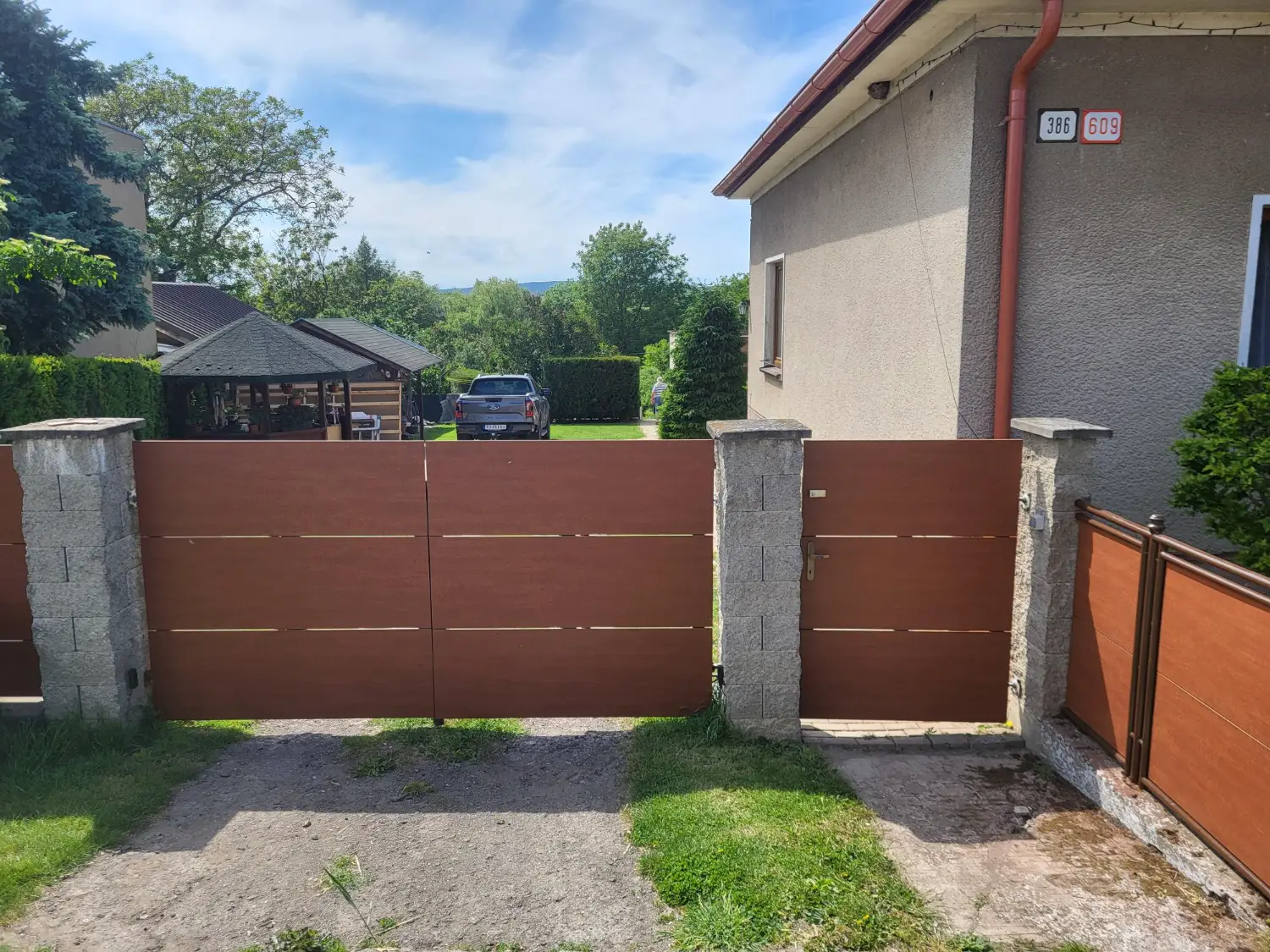 Realizácia plotu vo Veľkých Ripňanoch v roku 2024 bola navrhnutá s použitím moderných Fundermax HPL panelov, ktoré dodali plotu elegantný a vysoko odolný vzhľad.