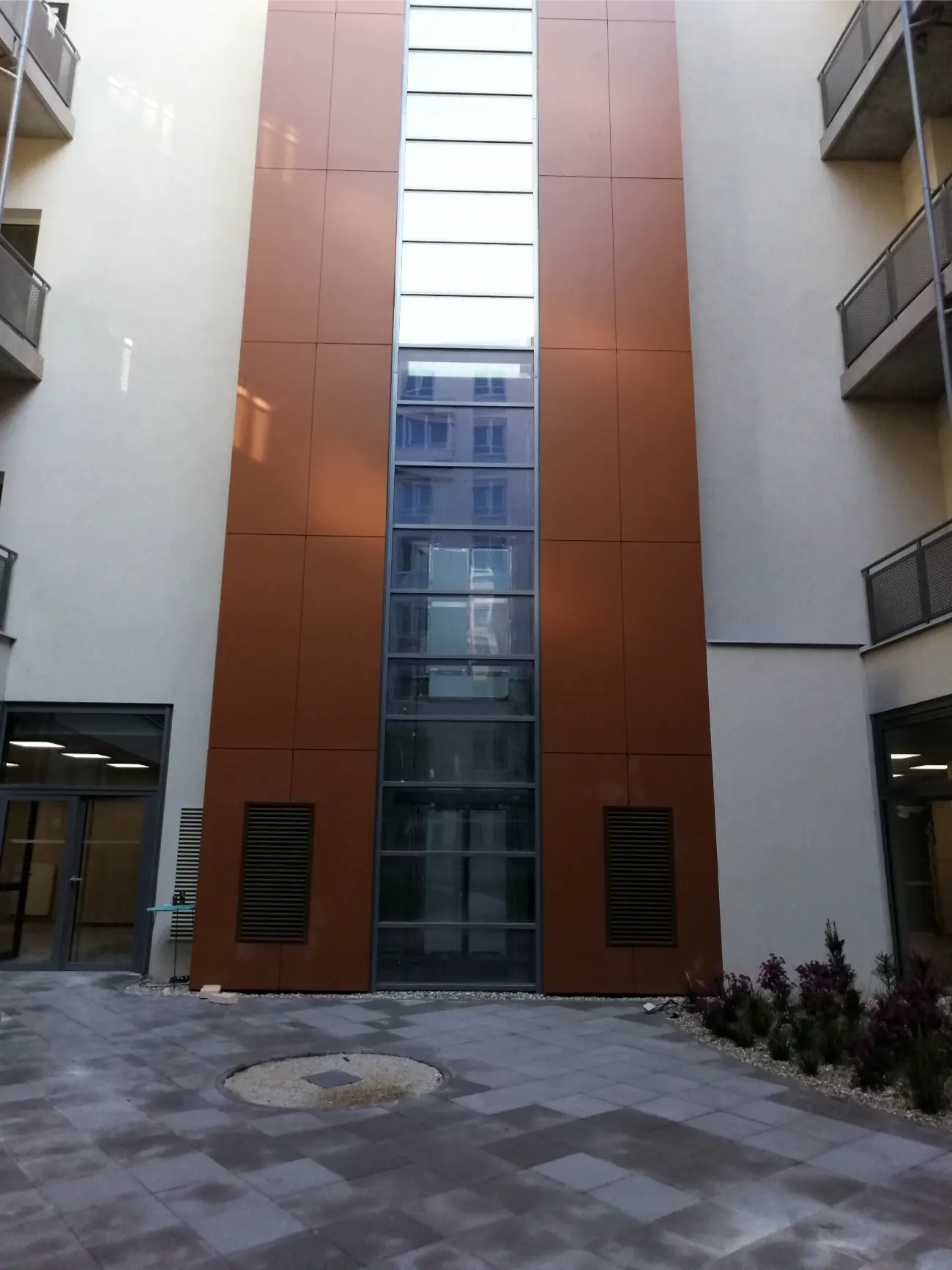 Panely boli osadené na certifikovanom nosnom systéme, čo zabezpečilo presné lícovanie, vysokú pevnosť a dlhodobú stabilitu celej fasády.