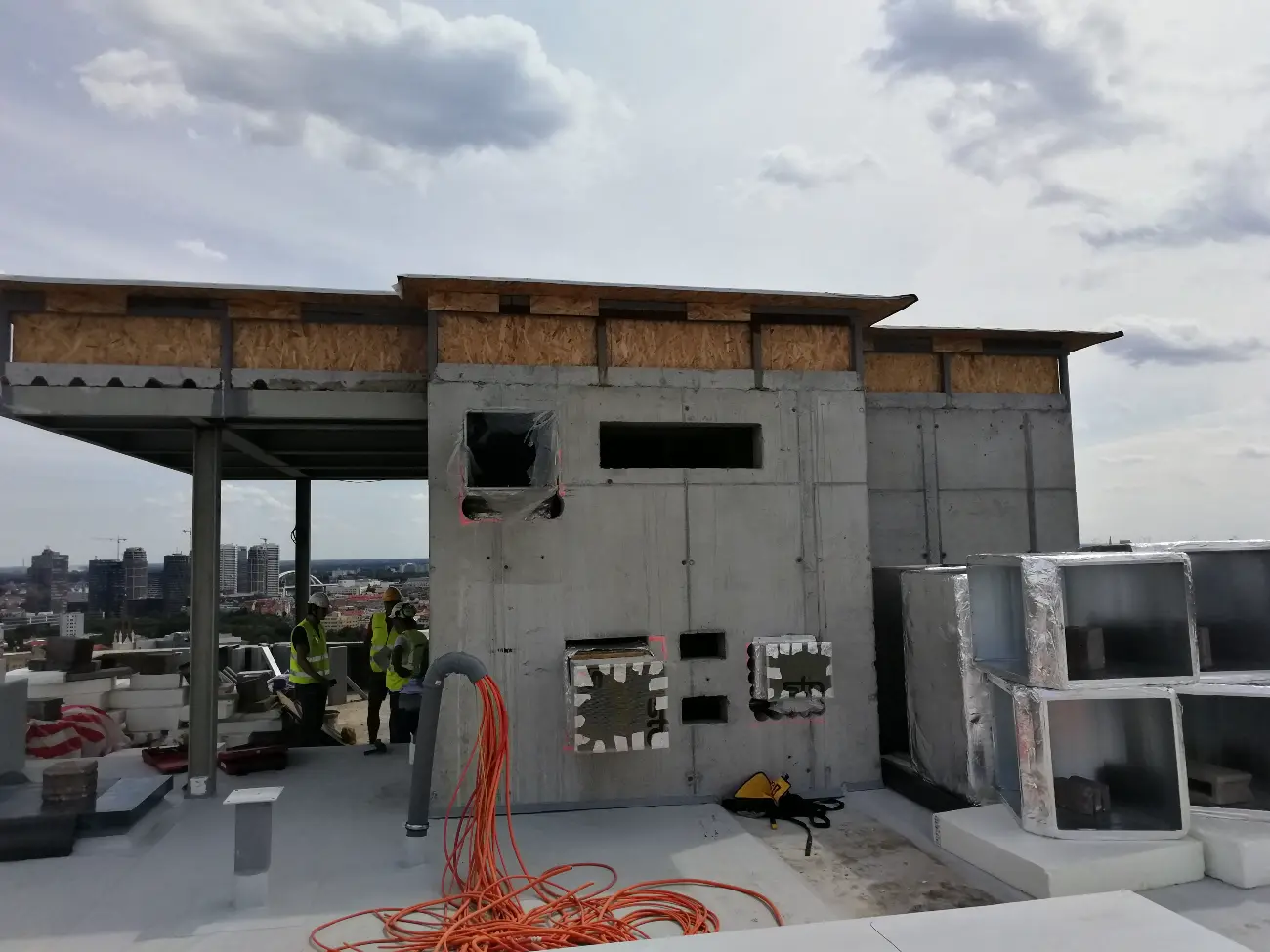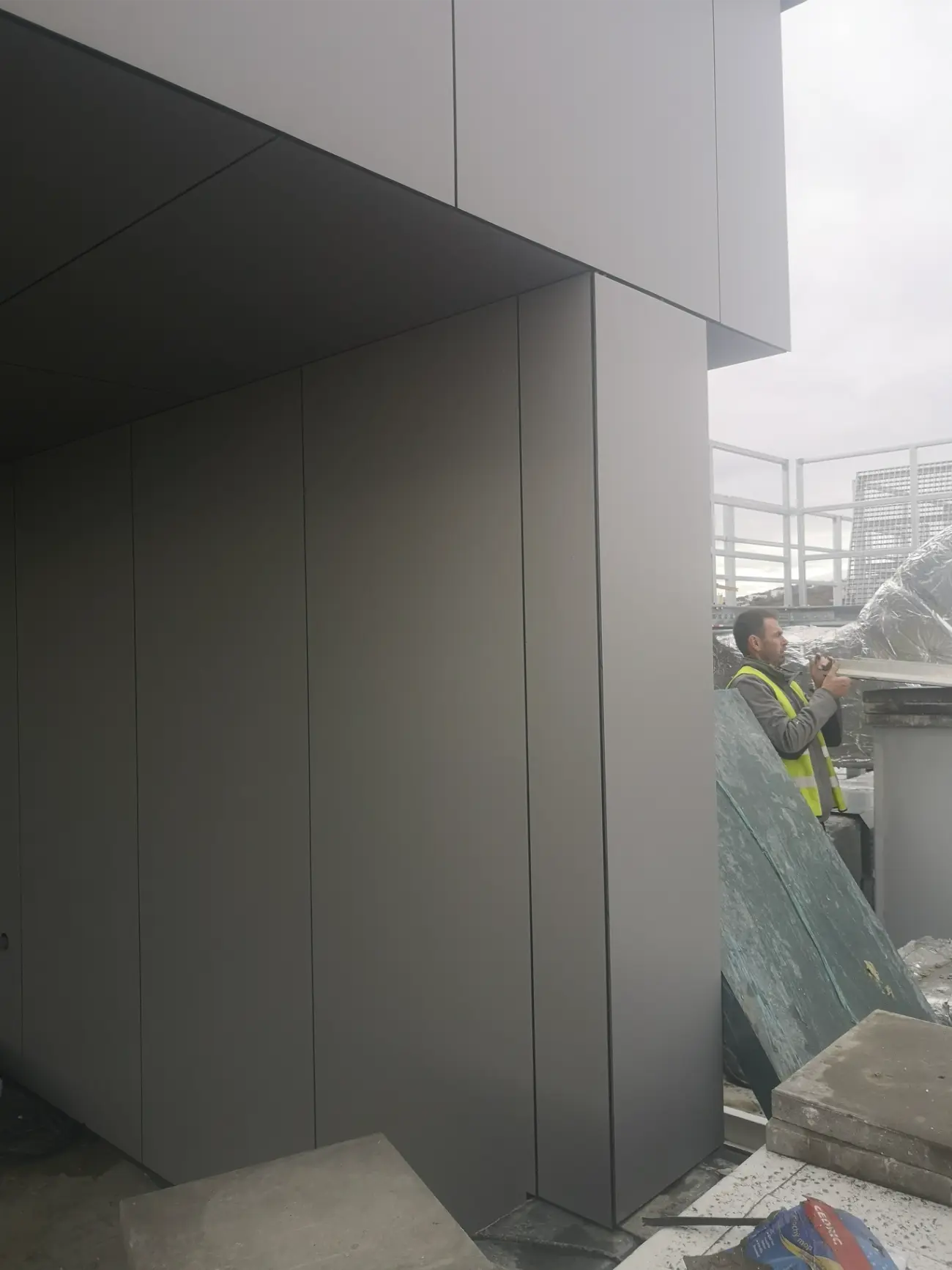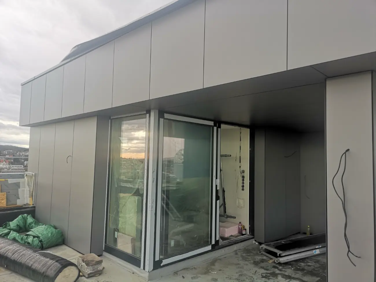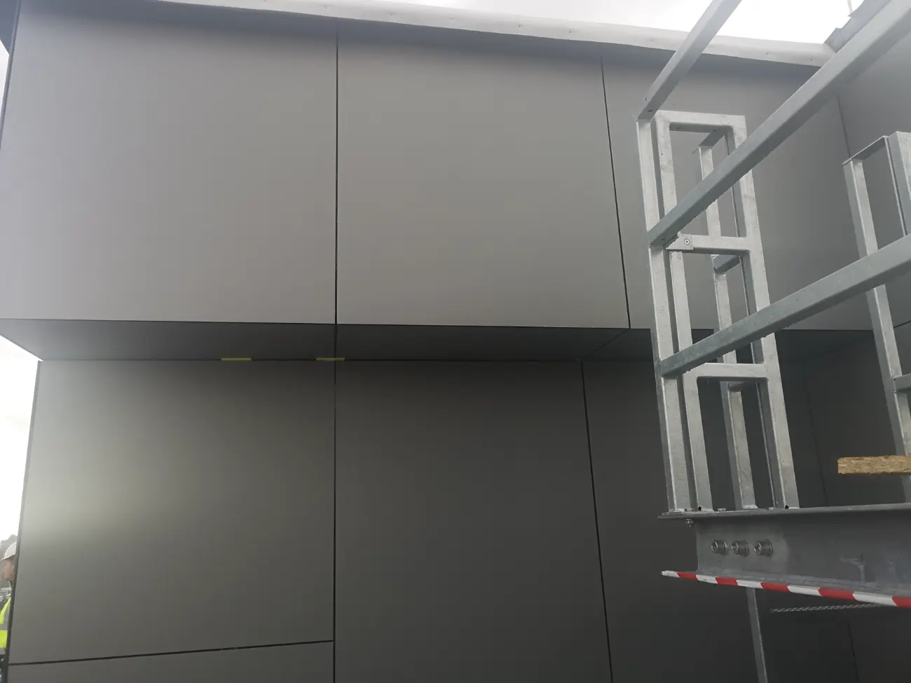 Panely boli osadené na certifikovanom nosnom systéme, čo zabezpečilo presné lícovanie, vysokú pevnosť a dlhodobú stabilitu celej fasády.